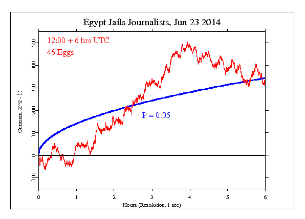 The GCP event was set for 6 hours beginning about the time of the verdict and sentencing at 12 noon UTC (I was unable to get the precise time). The result is Chisquare 21912 on 21600 df for p = 0.067 and Z = 1.497.