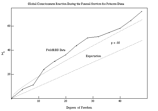 Abstract The tragic death of Princess Diana generated a worldwide reaction, and the memorial ceremonies focused attention from across the world in a shared consciousness experience with profound emotional impact. We hypothesized that the worldwide sharing might produce an effect on the random event generator (REG) devices used in Field REG studies. A week later, the world watched Mother Teresa's funeral, and, though her death generated a less emotional reaction, it was another opportunity to study possible anomalous effects of global events. Independent REG datasets were recorded before, during, and after
