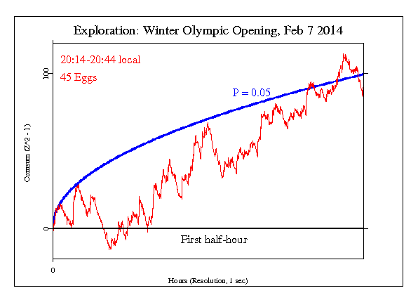 An exploration: Cumulative deviation during the first half hour of the Opening Ceremonies for the 2014 Winter Olympics