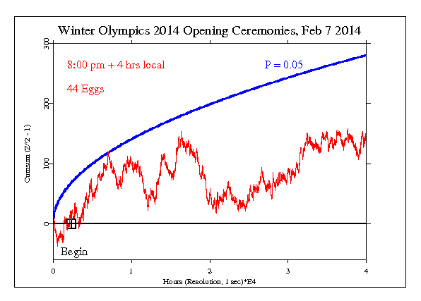 Cumulative deviation of Network Variance during the Opening Ceremonies for the 2014 Winter Olympics